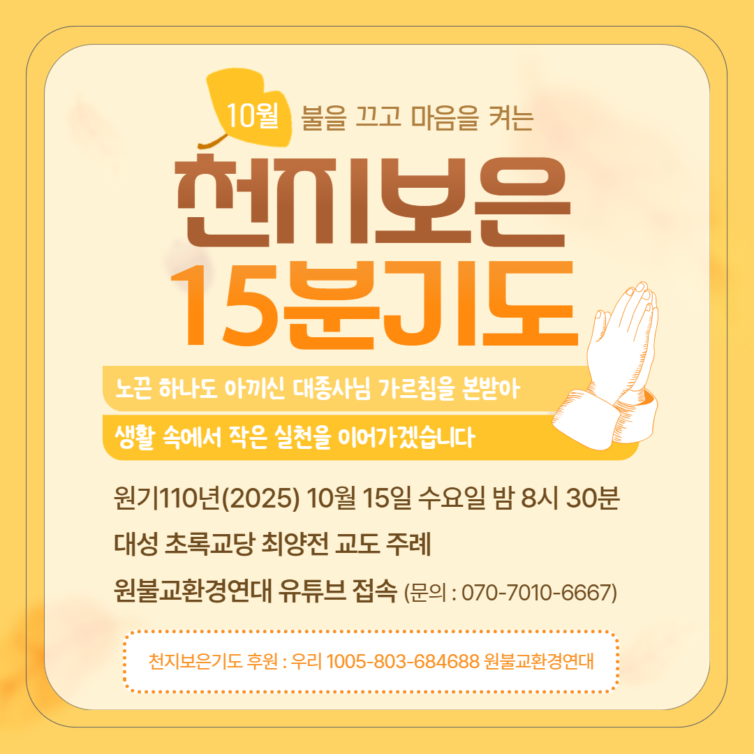 #기도 #지구 #자연 #기후위기 #천지 #은혜 #반성 #실천 #다짐 #생활 #작은 #모두 #함께 #종교 #원불교 #천지보은15분기도 #대성교당